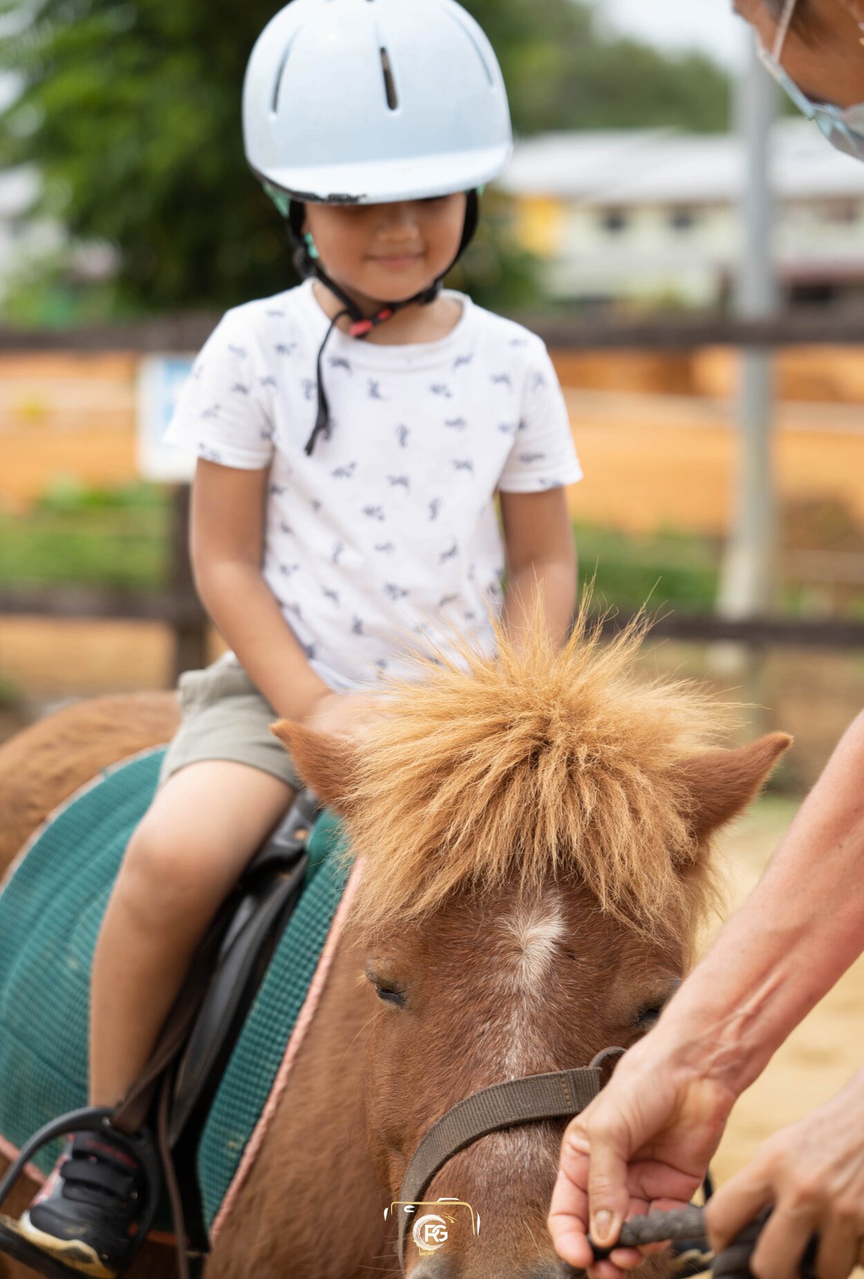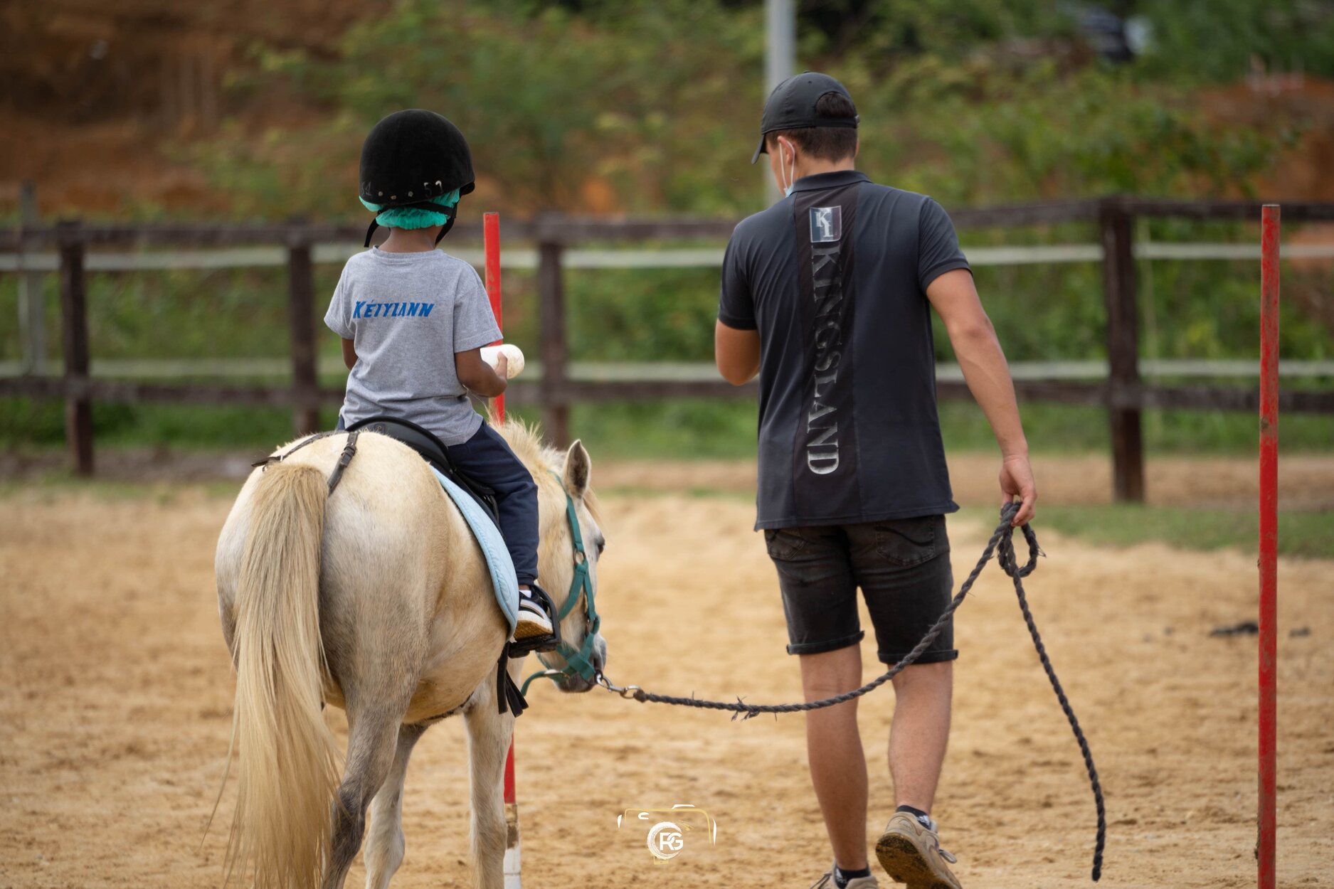 C’est vous, parent ou accompagnateur, qui tenez le poney. Vous pouvez marcher dans l’enceinte du centre équestre le laps de temps que vous souhaitez.